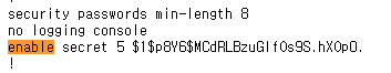 Enable password 를 찾아보라고 한다. 한번 보자.