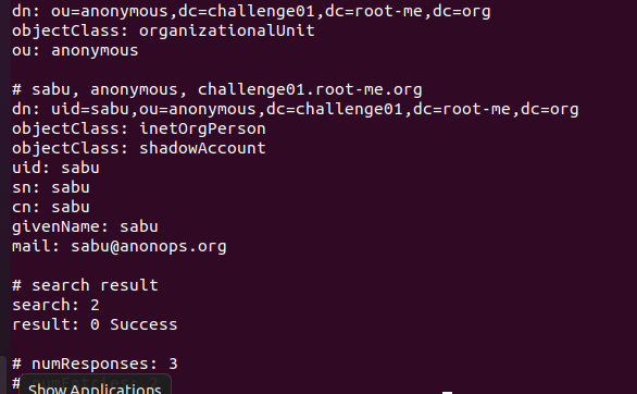 ldapsearch -H ldap://challenge01.root-me.org:54013 -x -b "dc=challenge01,dc=root-me,dc=org"