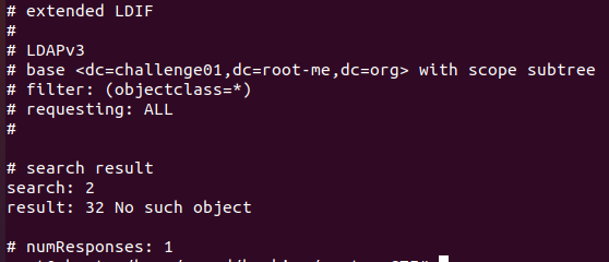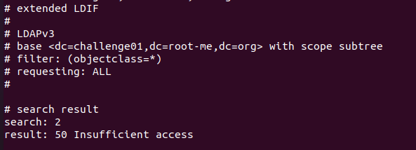 ldapsearch -h ldap://challenge01.root-me.org -p 54013 -x -b "dc=challenge01,dc=root-me,dc=org"