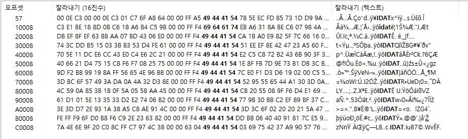 10008 블럭부터 idat 로 나와있기 때문에 그 밑에서부터는 사진이 짤려 보이는 것 같다. 수정해주자.