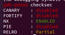 이제 GDB로 어떤 보안옵션이 있는지를 보자.