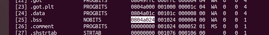 "/bin/sh" 를 BSS영역에 구할거니까. BSS영역의 주소도 구해보자.